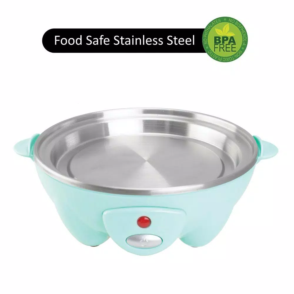 The Electric Egg Cooker with Auto Shutoff cooks the best eggs every time. Just add water, pop your eggs in, and hit the power button. This blue electric cooker can cook up to 7 soft, medium, or hard boiled eggs, poach up to 2 eggs, or prepare a delicious 3-egg omelet. But this reliable egg cooker doesnt just cook eggsit also steams veggies. When not in use, the trays stack inside for easy, convenient storage.