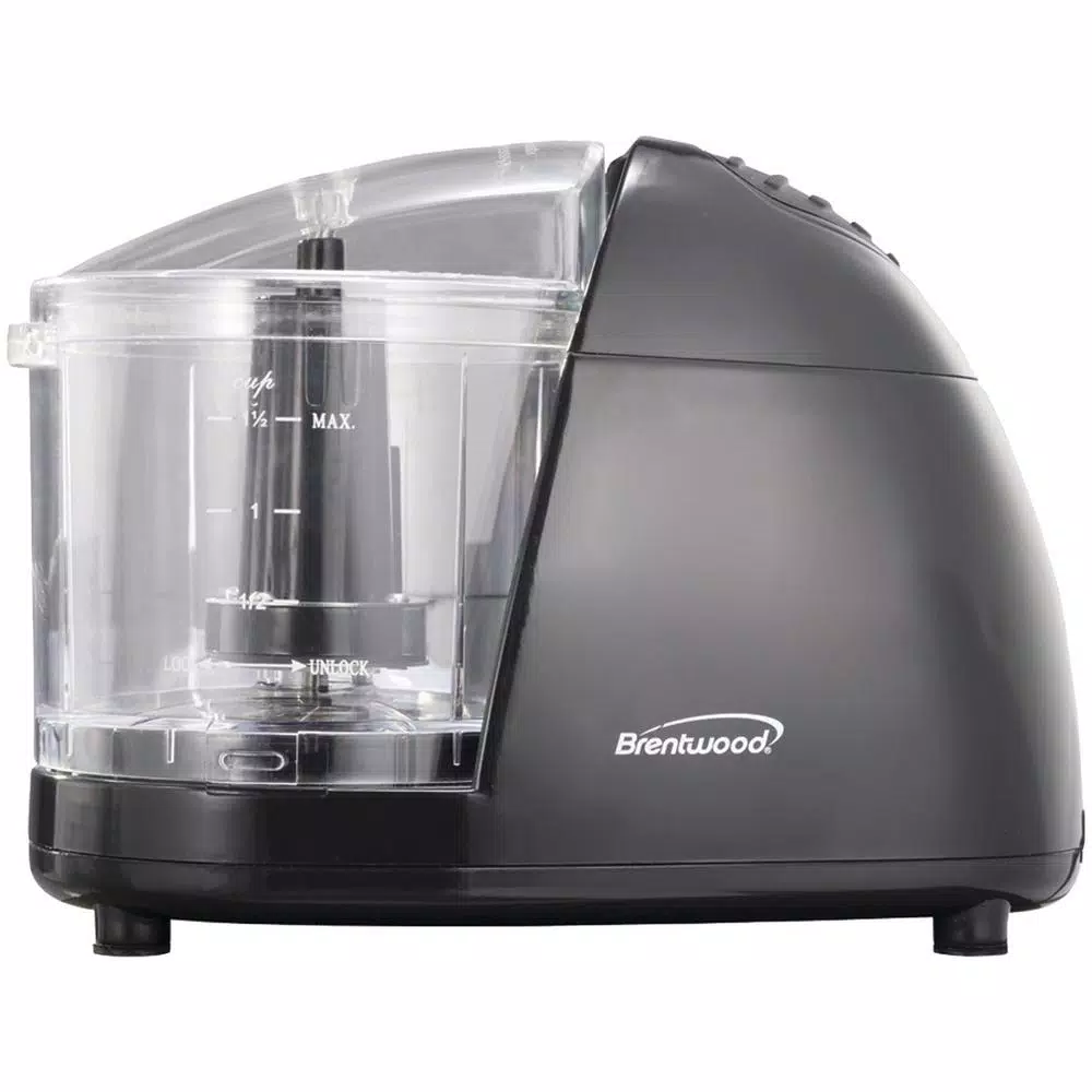 Slice, dice and chop your ingredients with ease with the Brentwood Appliances Mini Food Chopper. It is finished in black and features a generous 1.5-cup capacity and nonskid base. Plus the stay-sharp chopper wonโt dull over time.